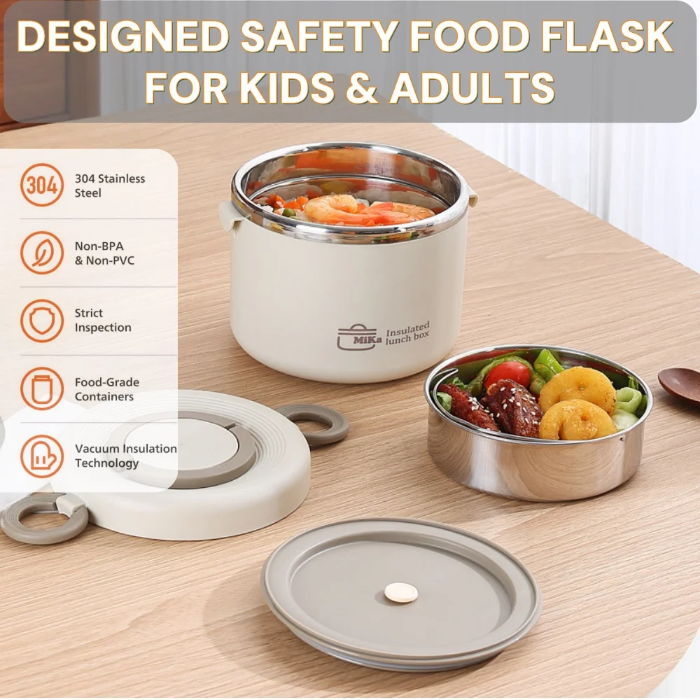 Experience lasting hot or cold meals with our 304 stainless steel lunch box, featuring double wall insulation for optimal temperature retention.