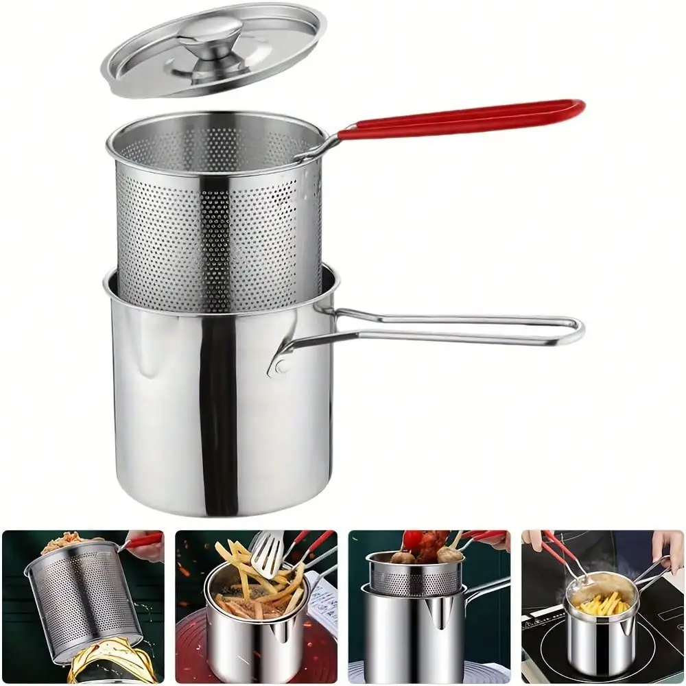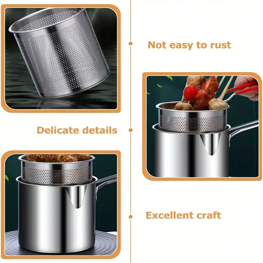 3pcs stainless steel fryer set with filter - perfect for home cooking and restau