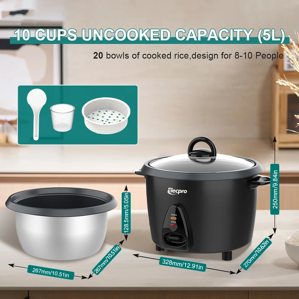 【Large Capacity】: This rice cooker holds 5 liters, perfect for serving 8-10 people simultaneously, ideal for gatherings.